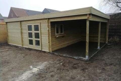 tuinhuis met plat dak en oversteek van 7m x 3m