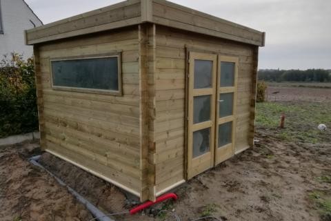 tuinhuis met plat dak en oversteek van 10m x 4m