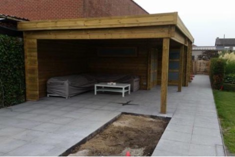 Poolhouse met dubbele draaideur, hellend dak en oversteek